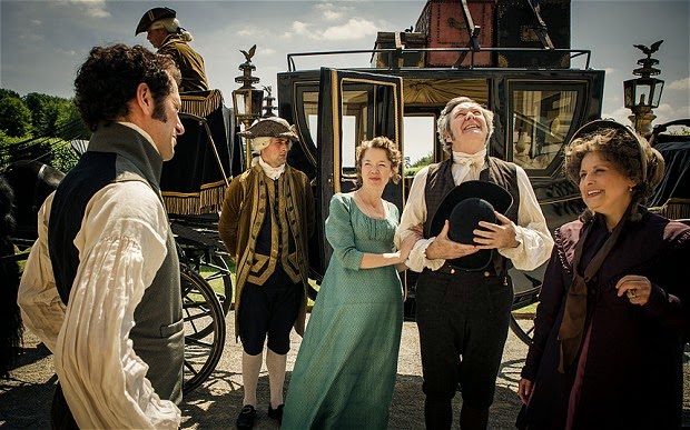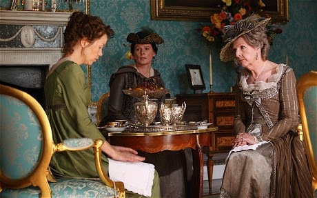 Addendum: Since posting this I've received an anonymous comment that informs me that the last two dresses pictured are, in fact, recycled from past period productions and are designed by Ruth Myers and Jacqueline Durran respectively. If you'd like to know their past, here are the links
