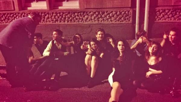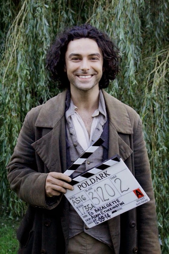 Aidan Turner with the Social Media Team at the wrap party via Official Poldark