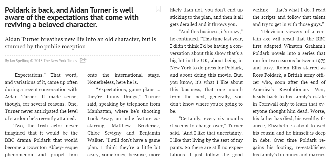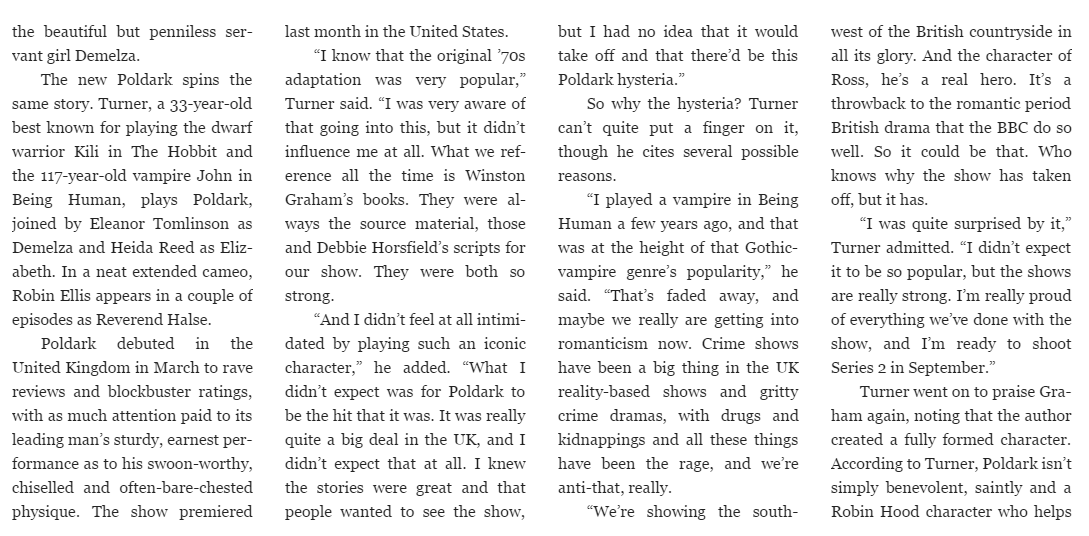 Video: Aidan Turner Talks About Ross
