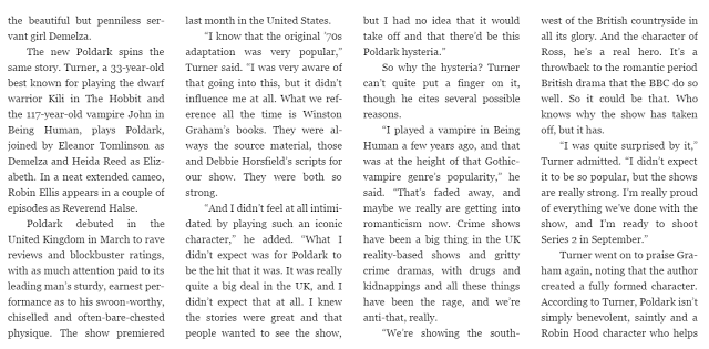 Aidan turner talks about his riding skills and Seamus in this MasterpiecePBS video.
