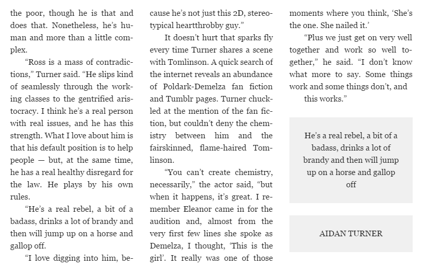 Aidan Turner talks about the traits of Ross he sees in himself.