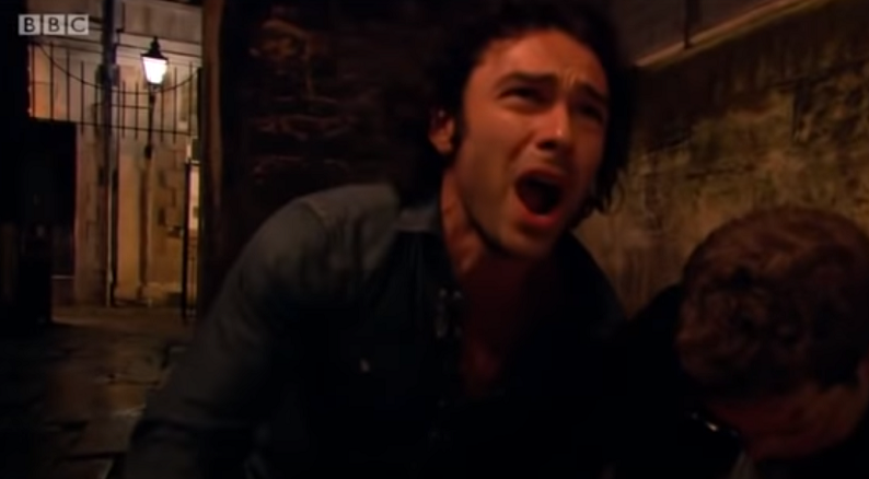 Now I know many of you have watched Being Human but, in case you haven't, 'Becca's Alley' is the location of a very important scene in the first episode of the show, where Mitchell (Aidan Turner) has to decide whether to save Becca's life. And now here was Ross Poldark striding out of his house right opposite the very spot where Becca had lain!