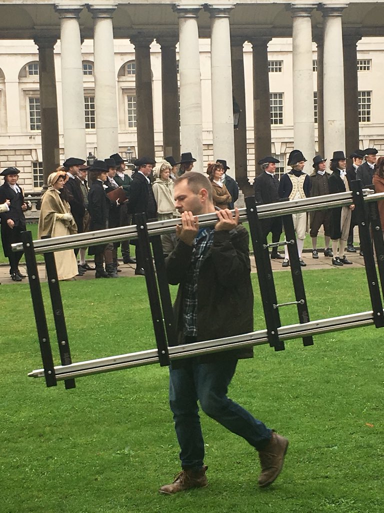 Filming was reported at a number of locations including Cheddar Gorge, Bowood House and St Andrew's Old Church, Holcombe as well as at The Bottle Yard Studios in Bristol. The Location Guide said there would be some filming in London and, sure enough, producers Mammoth Screen gave us a taste of the action at the Old Royal Naval College in Greenwich, with this snap.