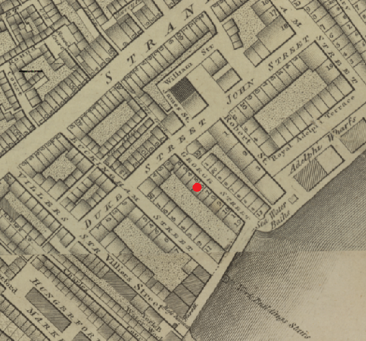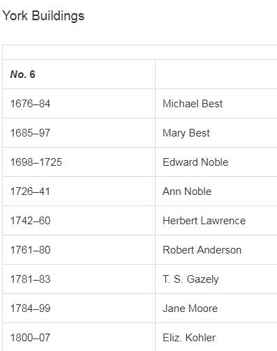 (1.) 'York Buildings', in Survey of London: Volume 18, St Martin-in-The-Fields II: the Strand, ed. G H Gater and E P Wheeler (London, 1937), pp. 81-83. British History Online http://www.british-history.ac.uk/survey-london/vol18/pt2/pp81-83 [accessed 10 April 2018].