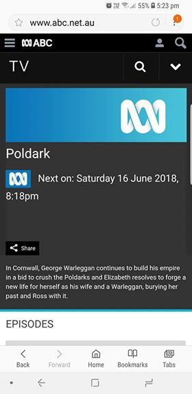 There's now confirmation on the ABC schedule that Poldark is back on 16 June at 8.18 pm. Many thanks to Roz Bevis on facebook for this news and the screencap.